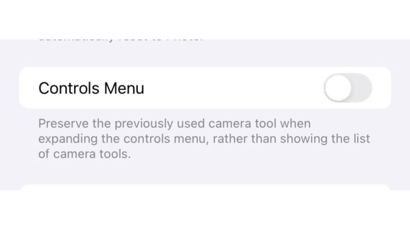 Tùy chọn “Controls Menu” trong ứng dụng Camera: Tùy chọn mới này cho phép giữ nguyên các công cụ camera đã sử dụng trước đó khi người dùng mở rộng menu điều khiển thay vì hiển thị lại danh sách tất cả công cụ.