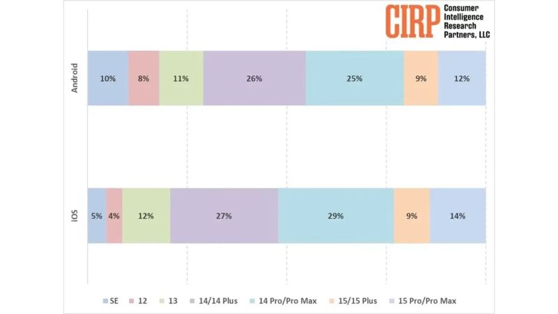 Tuy nhiên, trái ngược với người dùng iPhone hiện tại, những người sử dụng iPhone khi nâng cấp thường ưa chuộng các mẫu điện thoại mới nhất (chỉ 21% chọn các mẫu cũ hơn). Ngược lại, một phần đáng kể (29%) người chuyển đổi từ Android bị thu hút bởi iPhone SE 3, 12 hoặc 13 (bao gồm cả phiên bản mini). Điều này cho thấy, người dùng chuyển từ Android sang iPhone có xu hướng sở hữu những chiếc điện thoại đời cũ hơn thay vì các sản phẩm mới ra mắt. Mặc dù điều này có vẻ là tin tốt cho Apple, nhưng theo CIRP, tỷ lệ người chuyển đổi Android cao hơn có thể là một yếu tố khiến doanh số iPhone 15 trở nên tương đối yếu trong năm nay. Lý do là người dùng Android quan tâm nhất đến một hệ điều hành mới và thiết bị mới với mức giá cạnh tranh, nhưng họ không cần phiên bản mới nhất và tuyệt vời nhất từ Apple.