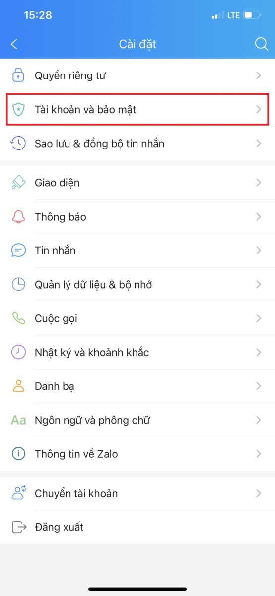 Bước 2: Tại đây chọn Tài khoản và bảo mật