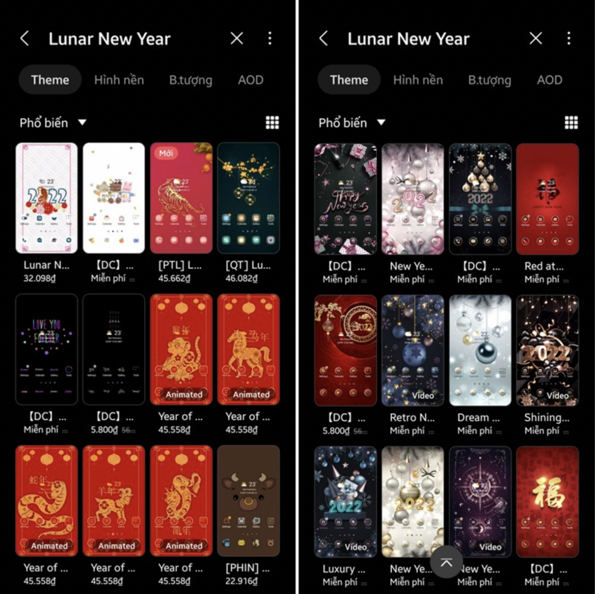 Bước 2: Nhấn vào biểu tượng Tìm kiếm (icon kính lúp) và nhập Lunar New Year và chọn 1 theme mà bạn cảm thấy yêu thích --> Tải về