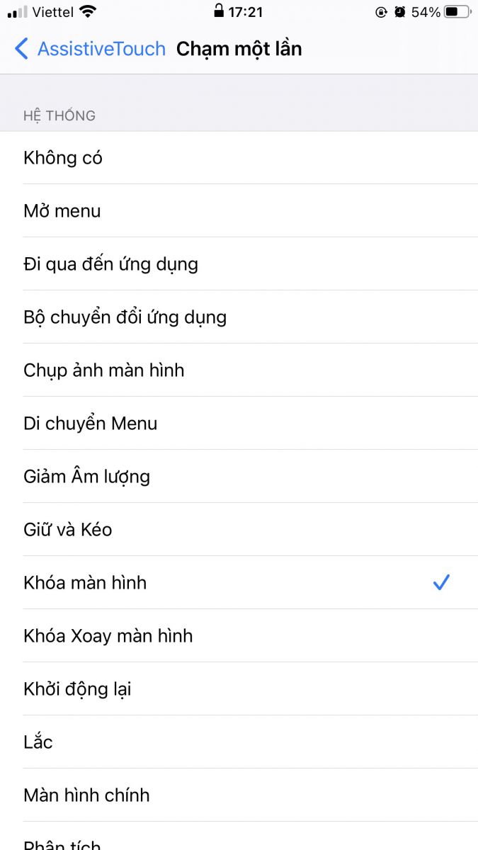 Bước 3: Quay trở lại và lần lượt chọn "Chạm 1 lần" > Chọn lệnh bạn muốn đặt, ví dụ "Khoá màn hình"