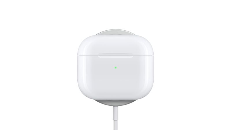 Hộp sạc trên AirPods 3 cũng được thiết kế trau chuốt hơn với các góc bo tròn tinh tế tạo cảm giác sang trọng, dễ dàng cầm nắm. Ngoài ra trên hộp sạc còn có đèn báo sạc (đỏ, xanh) giúp người dùng nhận biết tình trạng của pin.