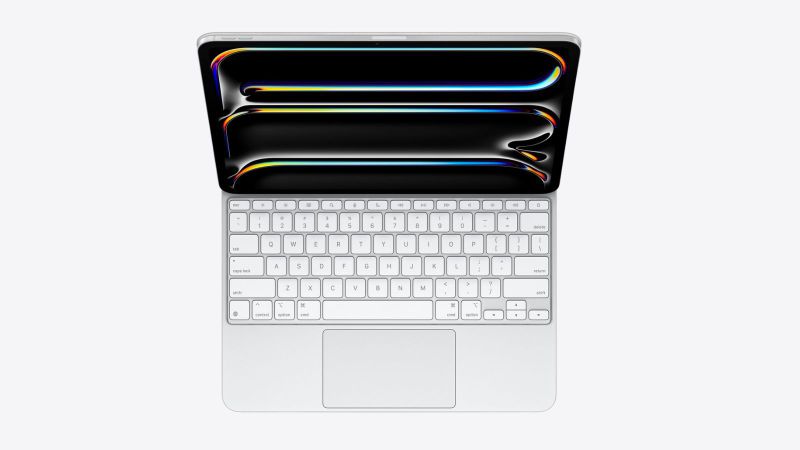 Bàn phím Apple Magic Keyboard + Trackpad iPad Pro 13 inch 2024 là phụ kiện hoàn hảo, mang đến cho người dùng iPad trải nghiệm làm việc và giải trí như trên laptop. Với thiết kế bản lề “lơ lửng” giúp dễ dàng điều chỉnh góc nhìn, dãy phím chức năng tiện lợi cùng trackpad nhạy bén, Magic Keyboard hứa hẹn sẽ biến chiếc iPad Pro thành một công cụ mạnh mẽ, đáp ứng tốt mọi nhu cầu từ chỉnh sửa, thao tác chi tiết đến điều hướng mượt mà.