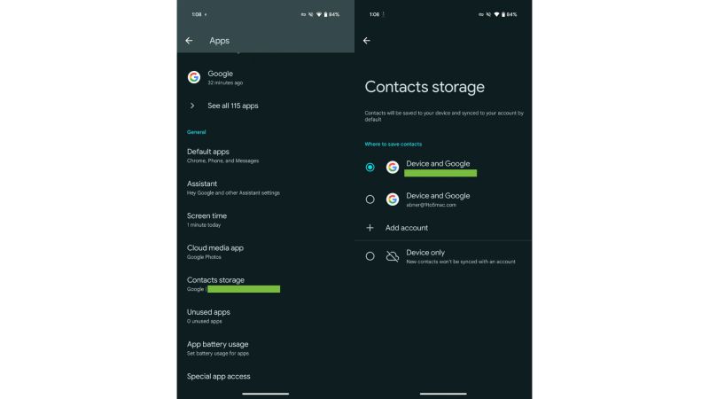 Với Android 16 Beta 1, Google đã bổ sung thêm một mục mới có tên Contacts storage ở trong phần cài đặt của Ứng dụng. Theo mặc định, danh bạ của người dùng sẽ được lưu cả trên thiết bị và đồng bộ hóa với tài khoản Google của họ. Điều này cho phép người dùng truy cập danh bạ từ nhiều thiết bị khác nhau được liên kết với cùng một tài khoản Google. Nếu tắt tính năng đồng bộ hóa, danh bạ sẽ chỉ được lưu trữ cục bộ trên thiết bị.