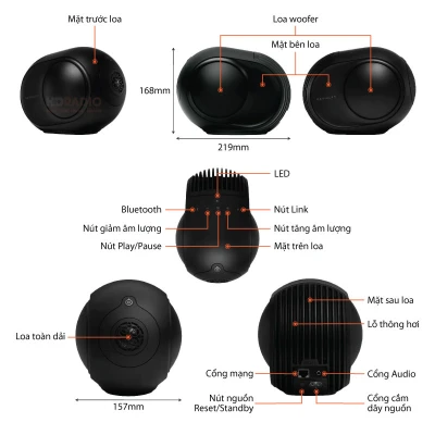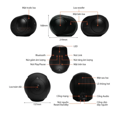| Kết nối không dây | + Wi-Fi Dual-band (a/b/g/n/ac 2.4GHz & 5GHz) + Ethernet RJ-45 10/100/1000 Mbps (Gigabit) + CPL Homeplug AV2 - App: DEVIALET (iOS, Android). |