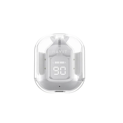 Hộp sạc của Havit TW971 có thiết kế trong suốt kết hợp với các gam màu nhẹ, mát mắt mang đến cho tai nghe vẻ ngoài độc đáo và thời thượng. Ngoài ra, hộp sạc còn được trang bị màn hình LED hiển thị mức pin của tai nghe, giúp người dùng dễ dàng theo dõi và sạc khi cần thiết.