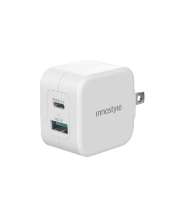 Củ sạc nhanh Innostyle Minigo Pro III Dual PD/QC 3.0 20W sử dụng Power Delivery và Quick Charge 3.0, cung cấp 20W USB-C cho các dòng iPhone, cũng như USB-A 18W để đảm bảo khả năng tương thích với tất cả các kiểu cũ hơn.