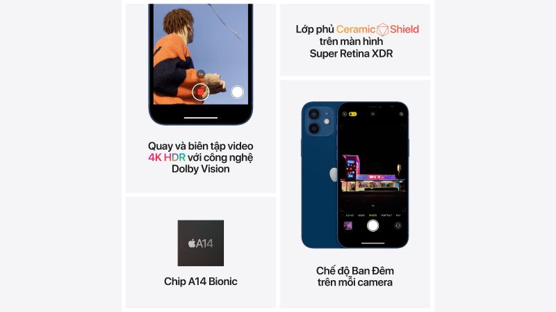 Không những có một ngoại hình đẹp mắt, iPhone 12 còn sở hữu một độ bền tuyệt hảo. Apple đã tích hợp lớp mặt kính với công nghệ Ceramic Shield có thể chịu được lực tác động khi rơi máy hơn tới 4 lần so với phiên bản tiền nhiệm. Giờ đây, người dùng có thể yên tâm hơn rất nhiều khi sử dụng thiết bị smartphone mới đến từ nhà Táo. Khả năng chống nước cũng được cải thiện tuyệt vời. Chiếc smartphone này được trang bị khả năng chống nước theo tiêu chuẩn IP68 , chịu được được độ sâu tối đa 6m trong khoảng thời gian 30 phút. Tổng thể lại, sự thay đổi về thiết kế đã làm cho thế hệ smartphone này có một vẻ đẹp lạ thường, tinh tế hơn so với phiên bản trước và đặc biệt còn đem lại một độ bền tuyệt vời nên người dùng có thể yên tâm, thoải mái sử dụng.