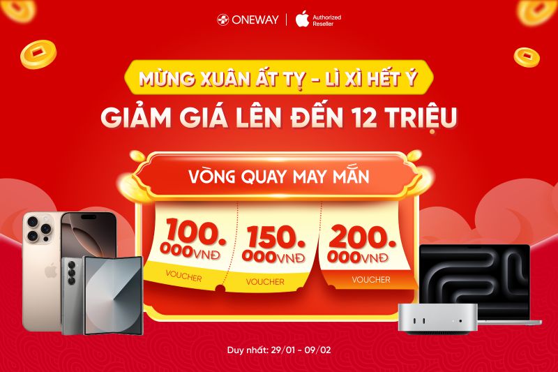 Chào xuân Ất Tỵ 2025, Oneway mang đến chương trình khuyến mãi "MỪNG XUÂN ẤT TỴ - LÌ XÌ HẾT Ý" sẽ mang đến cho Qúy khách hàng những cơ hội vàng để sở hữu sản phẩm công nghệ hiện đại cùng các phần quà giá trị siêu khủng. Đây chính là một dịp lý tưởng để Quý khách hàng khởi đầu một năm mới hứng khởi hơn!