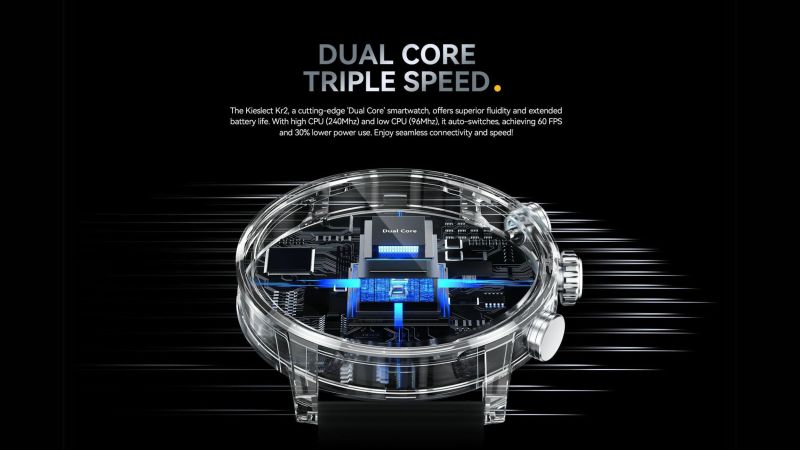 Đồng hồ thông minh KIESLECT KR 2 có thiết kế nhỏ gọn, năng động, cùng nhiều tính năng theo dõi sức khỏe tối ưu. Ở phiên bản này, đồng hồ còn được trang bị vi xử lý Dual-core mang lại tốc độ xử lý nhanh chóng và hình ảnh hiển thị sắc nét với màn hình AMOLED, cùng rất nhiều các tính năng thông minh khác.