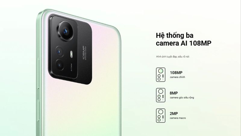 Cụm camera làm vuông vắn nhẹ nhàng tạo điểm nhấn cho mọi người dùng. Hệ thống camera bao gồm ống kính chính 108MP, 1 camera tele 8MP và macro 2MP. Khả năng bắt màu sắc tốt và màu sắc hài hòa chính phục vụ mọi người. Camera trước 16MP có khả năng chụp chân dung ấn tượng. Không chỉ vậy, Redmi Note 12S hỗ trợ quay video 1080p 30fps.