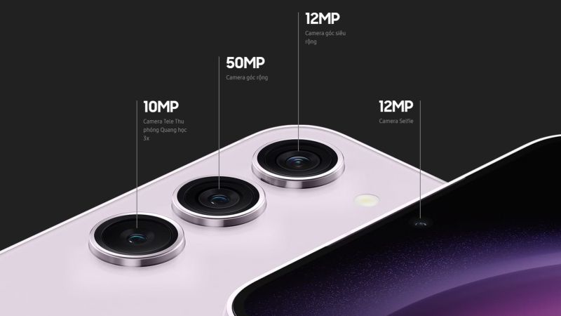 Samsung Galaxy S23 sở hữu camera được cải tiến mạnh mẽ, từ phần mềm AI cho tới quản lý chi tiết tông màu. Điện thoại được thiết lập ba camera gồm: camera chính 50MP với khả năng hiển thị màu sắc ấn tượng, độ tương phản cao và có ổn định hình ảnh quang học. Được hỗ trợ nhờ camera phụ tele 10MP và camera siêu rộng 12MP. Trong khi phía trước camera selfie 12MP cho khả năng chụp ảnh dễ dàng và quay được video 4K chính xác.