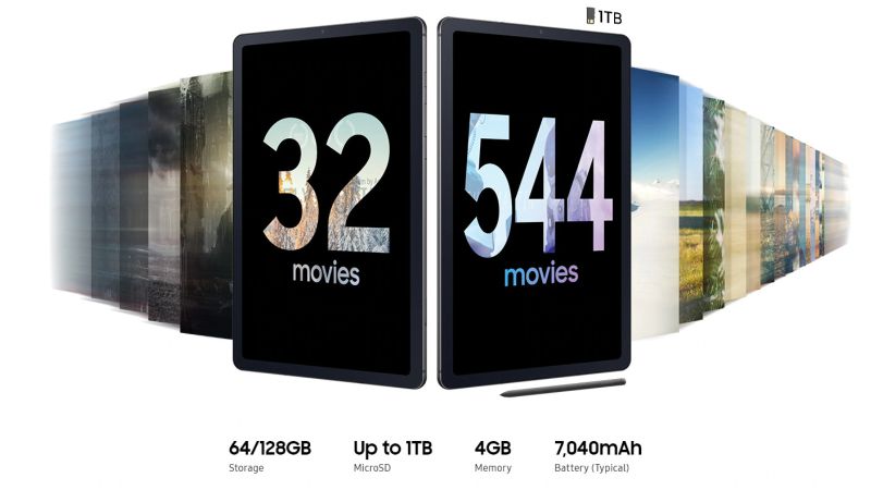Không chỉ vậy, với dung lượng RAM 4GB, người dùng sẽ tận hưởng trải nghiệm sử dụng mượt mà và linh hoạt hơn, dễ dàng chạy nhiều ứng dụng cùng lúc mà không bị lag giật. Đặc biệt, dung lượng bộ nhớ trong (ROM) 64GB cho phép Samsung Galaxy Tab S6 Lite 2024 lưu trữ một lượng lớn dữ liệu, đồng thời có thể mở rộng dung lượng lưu trữ qua thẻ nhớ microSD lên đến 1TB, giúp người dùng dễ dàng lưu trữ hàng ngàn tài liệu, hình ảnh và video.
