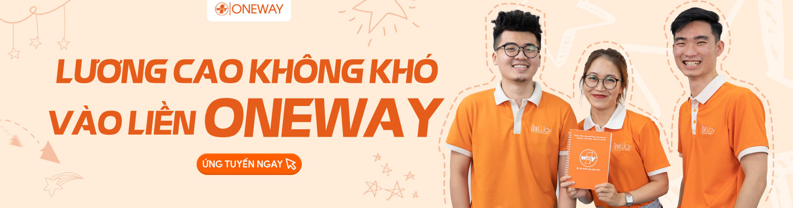 Gửi ngay CV cá nhân về địa chỉ mail tuyển dụng: oneway.hr01@gmail.com (tiêu đề theo form HỌTÊN_CV_vị trí muốn ứng tuyển. Ví dụ Nguyễn Văn A_CV_NVKD)