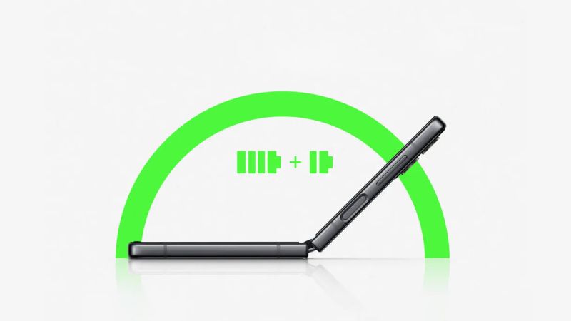 Samsung Galaxy Z Flip4 5G được trang bị viên pin 3700mAh cho phép bạn có thể chụp ảnh, xem phim, lướt web và kết nối lâu hơn mà không sợ hết pin. Bạn cũng có thể nạp lại năng lượng tức thì khi máy gần hết pin với Sạc nhanh siêu tốc, sạc 50% trong vòng 30 phút. Ngoài ra, bạn còn có thể chia sẻ trực tiếp cho bạn bè hoặc thiết bị đeo với tính năng Chia sẻ pin không dây.